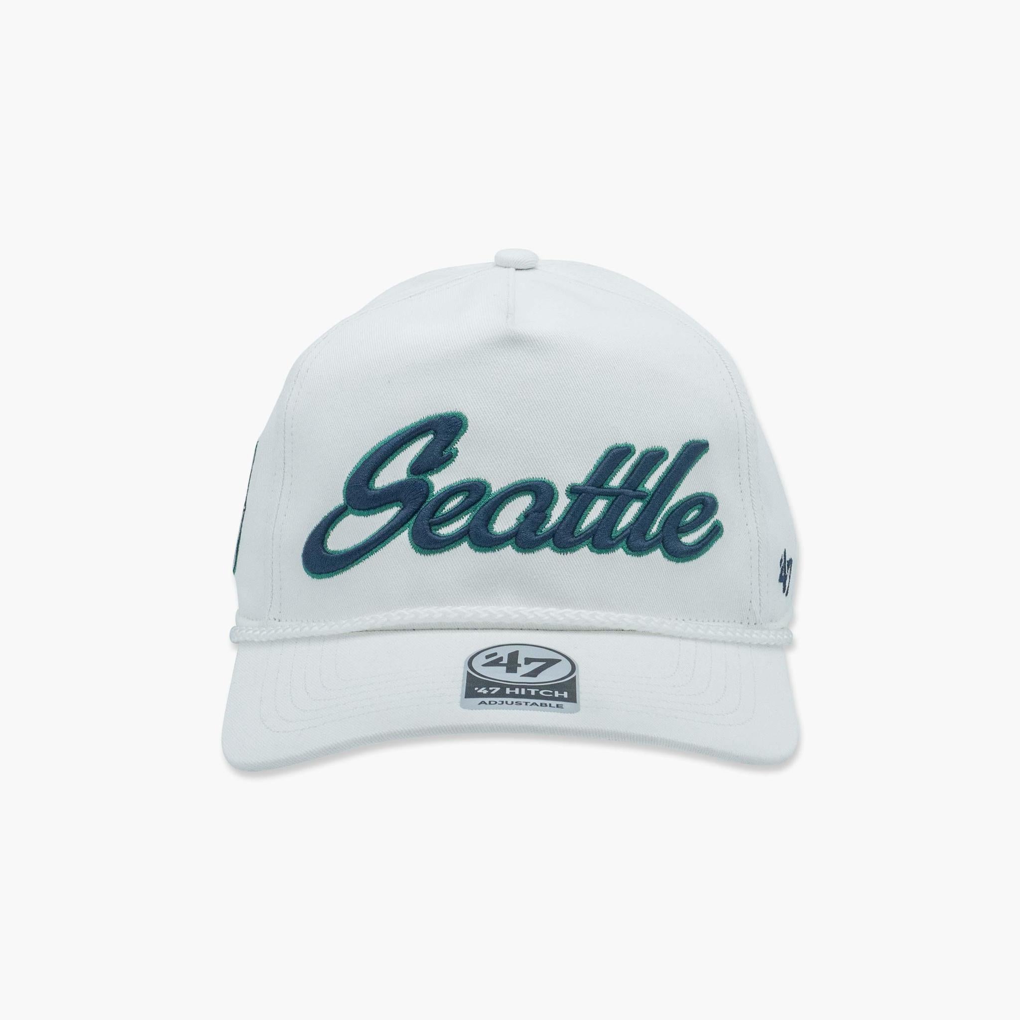 Get ready for another exciting season of Mariners Baseball with the Seattle Mariners White Script Hitch Snapback!