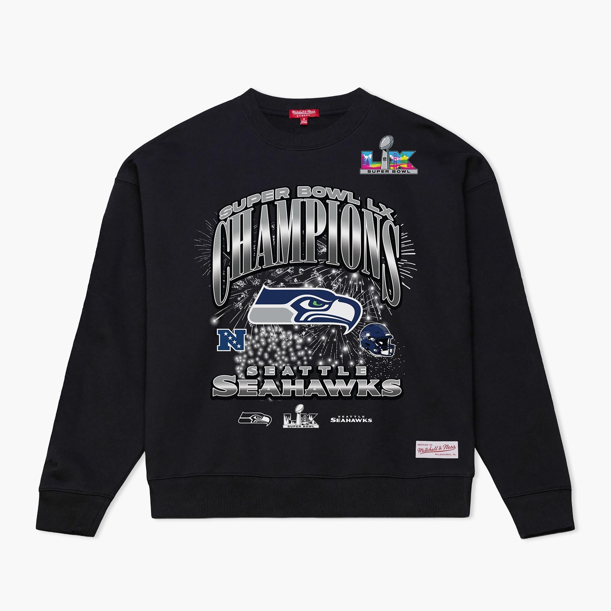 Celebrate one of the most thrilling seasons in franchise history with this officially licensed Seattle Seahawks Super Bowl LX Champions Celebration crewneck. Designed to honor Seattle’s unforgettable run to Super Bowl LX, this crewneck features bold championship-inspired graphics and authentic Seahawks colors that make your fan pride impossible to miss. The soft, premium cotton construction makes it comfortable enough for all-day wear—perfect for game day, watch parties, or representing the 12s wherever you go. Wear your Seahawks spirit with pride and commemorate this historic moment in team lore with a tee made for champions.