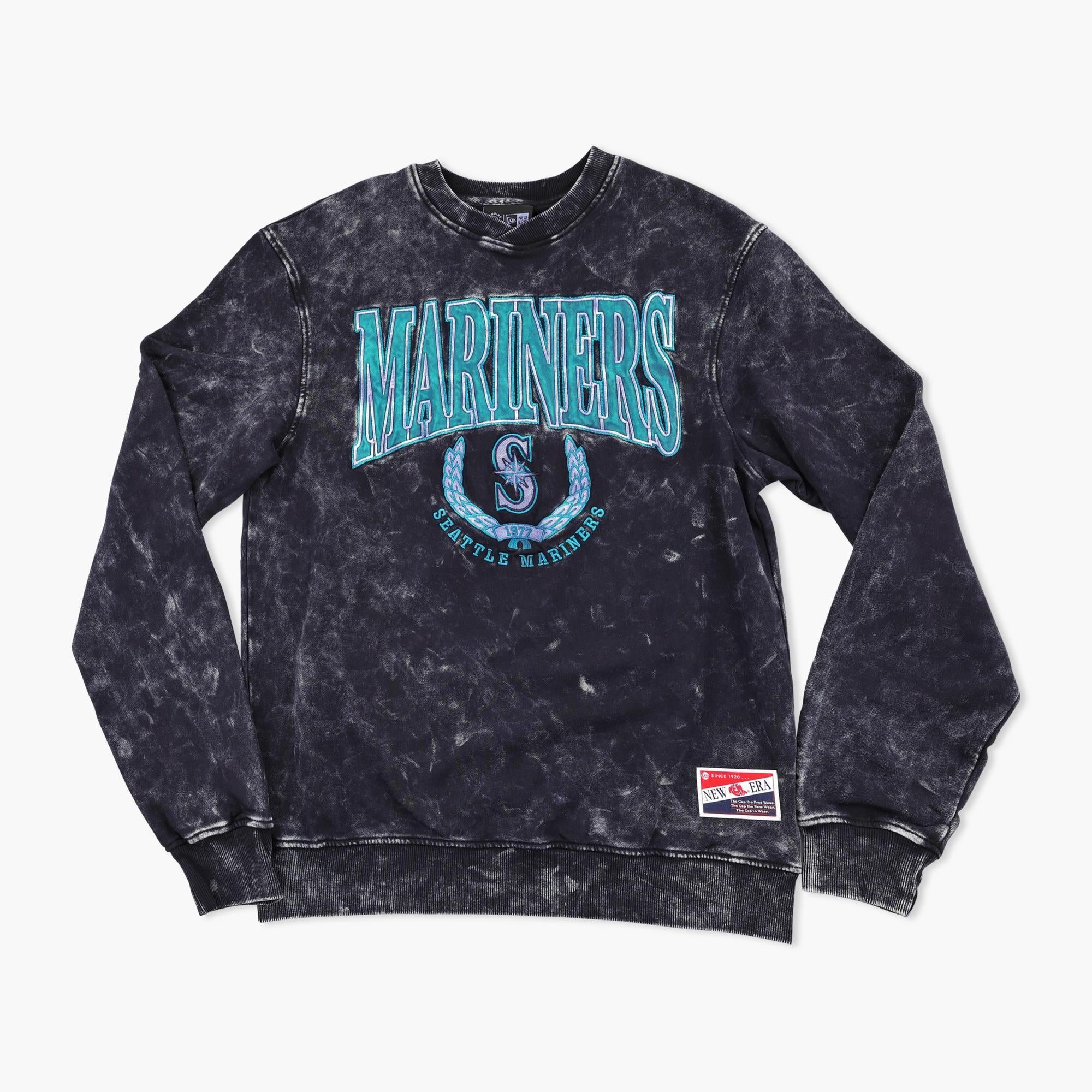 Seattle Mariners Navy Acid Wash Embroidered Crewneck