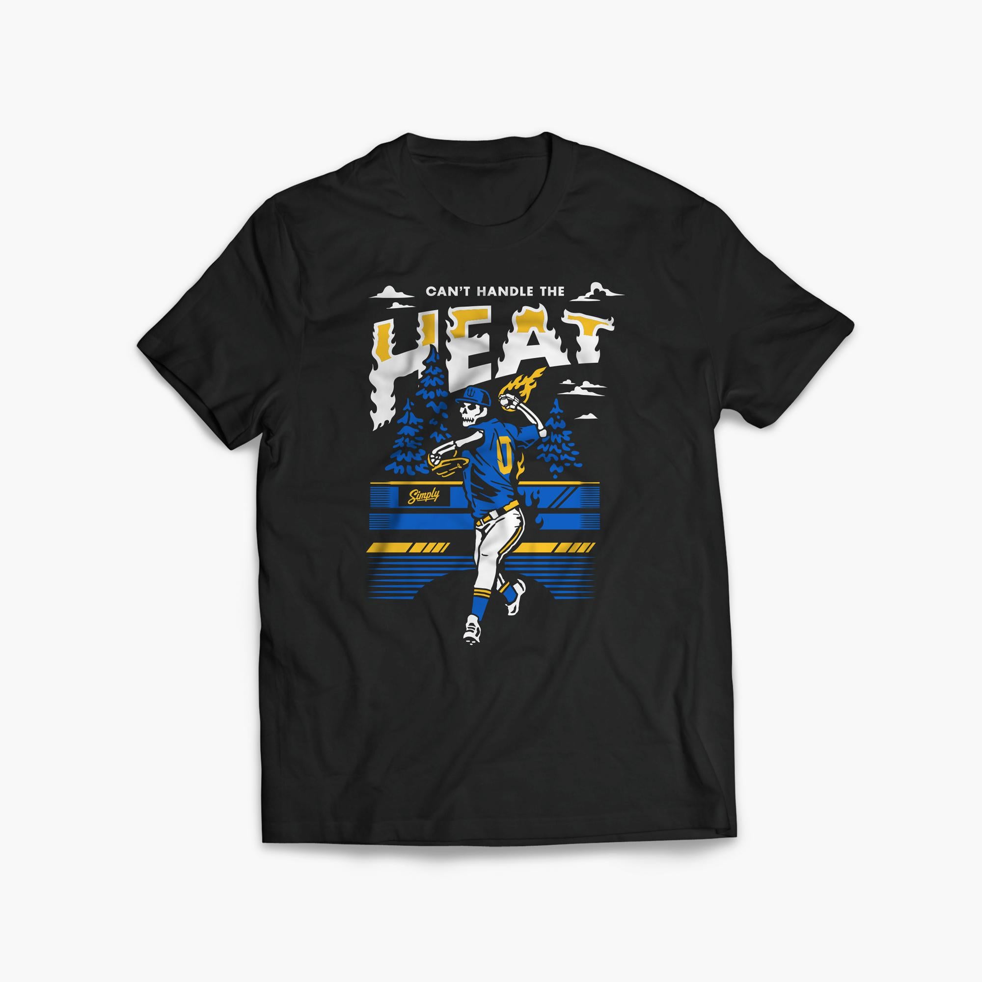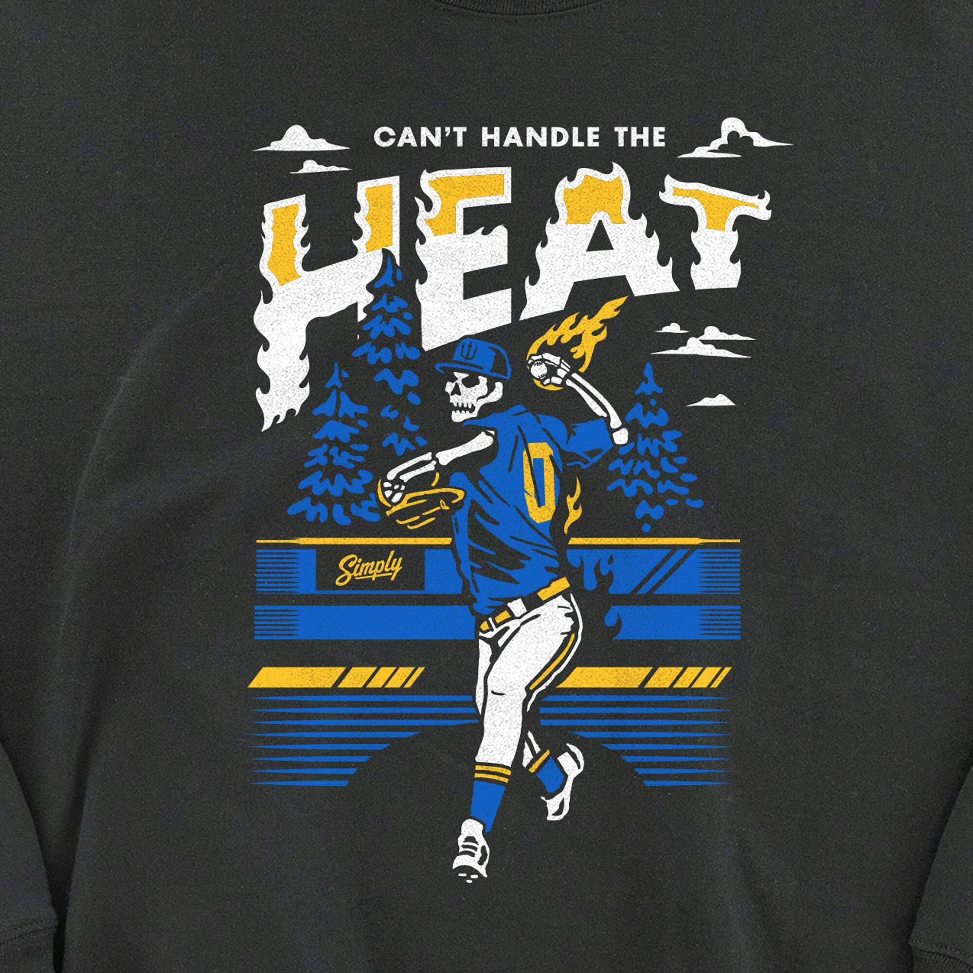 The Can’t Handle the Heat T-Shirt brings the fire to Seattle baseball. Featuring a skeleton pitcher hurling a flaming fastball in Mariners-inspired blue and gold, this design captures the heat of the mound and the energy of the Northwest. Printed on premium black cotton, it’s a must-have for fans who love their baseball with some attitude.