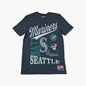 Seattle Mariners Navy Heather Vintage Collage T-Shirt