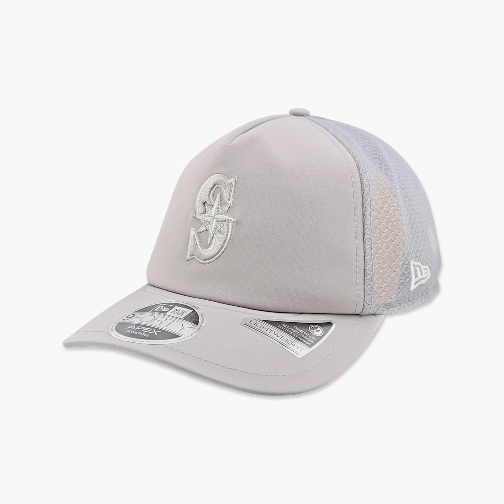 The Seattle Mariners 2026 Batting Practice Grey Apex Trucker Hat brings the clean on-field batting practice look to your everyday rotation. Featuring a sleek grey crown with a tonal Mariners compass “S” logo embroidered on the front, this hat delivers a modern, understated team style. Lightweight performance fabric and breathable mesh trucker panels help keep you cool and comfortable whether you're at the ballpark or on the go. Finished with a curved bill and adjustable fit, it’s a versatile piece of Seattle Mariners headwear for the 2026 season. ⚾