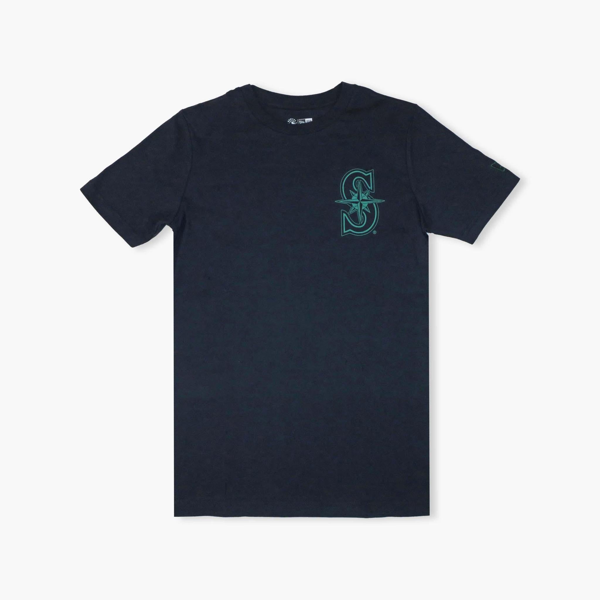 Proudly demonstrate your dedication to the Seattle Mariners with this great t-shirt from New Era. It features the distinct Mariners logo on the front, as well as a unique salmon graphic on the back to make your unwavering fandom known to all.