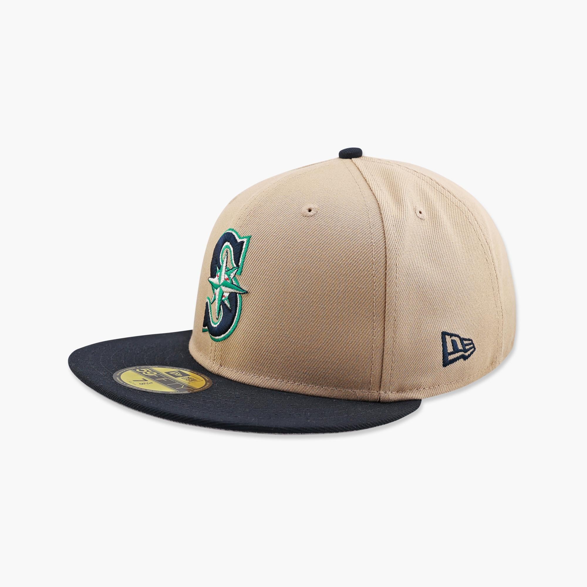 Rep the M’s in classic style with the Seattle Mariners Primary Logo Khaki/Navy Fitted Hat, featuring the iconic compass “S” logo embroidered on the front. This New Era fitted cap offers a structured crown and flat brim for a true on-field look and feel. The khaki crown paired with a navy visor delivers a clean, timeless color combo that stands out without trying too hard. A must-have for Mariners fans looking for everyday style with authentic team heritage.