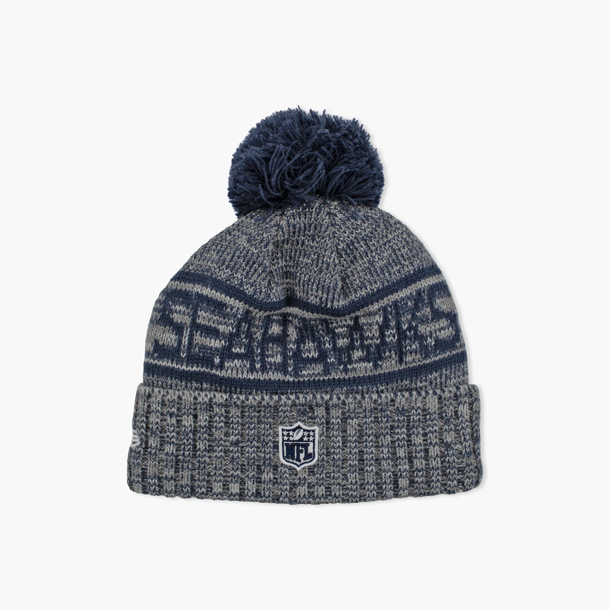 Gear up like the pros with the Seattle Seahawks 2025 Sideline Blue Cuff Pom Beanie. Featuring a navy and grey heather knit with the Seahawks wordmark across the crown, this beanie delivers the official look from the sidelines. The cuff is finished with a team logo patch, while the pom top adds a classic cold-weather touch. Perfect for staying warm and showing your Seahawks pride all season long.