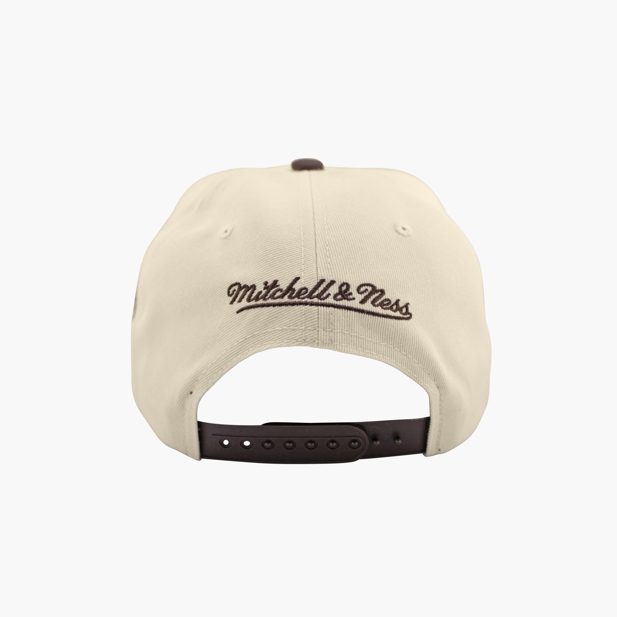 The Seattle Seahawks Cream Throwback Helmet Side Patch Snapback brings vintage team pride to a modern classic. Featuring the retro Seahawks logo and helmet side patch, this two-tone cream and brown cap delivers timeless Northwest style. Built by Mitchell & Ness with premium embroidery and an adjustable snapback fit. A must-have for collectors and Seattle football fans alike.