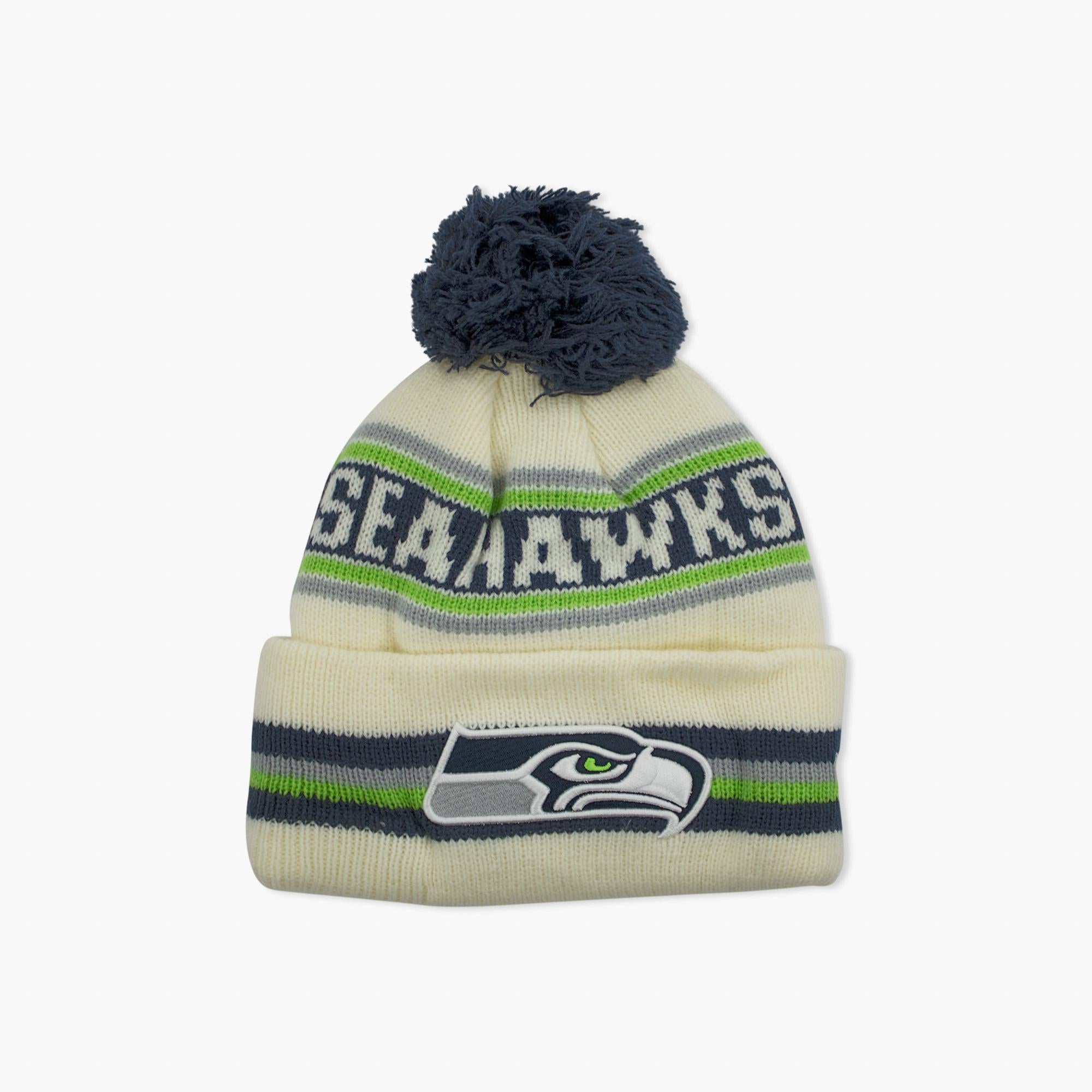 Seattle Seahawks Cream Script Cuff Pom Beanie