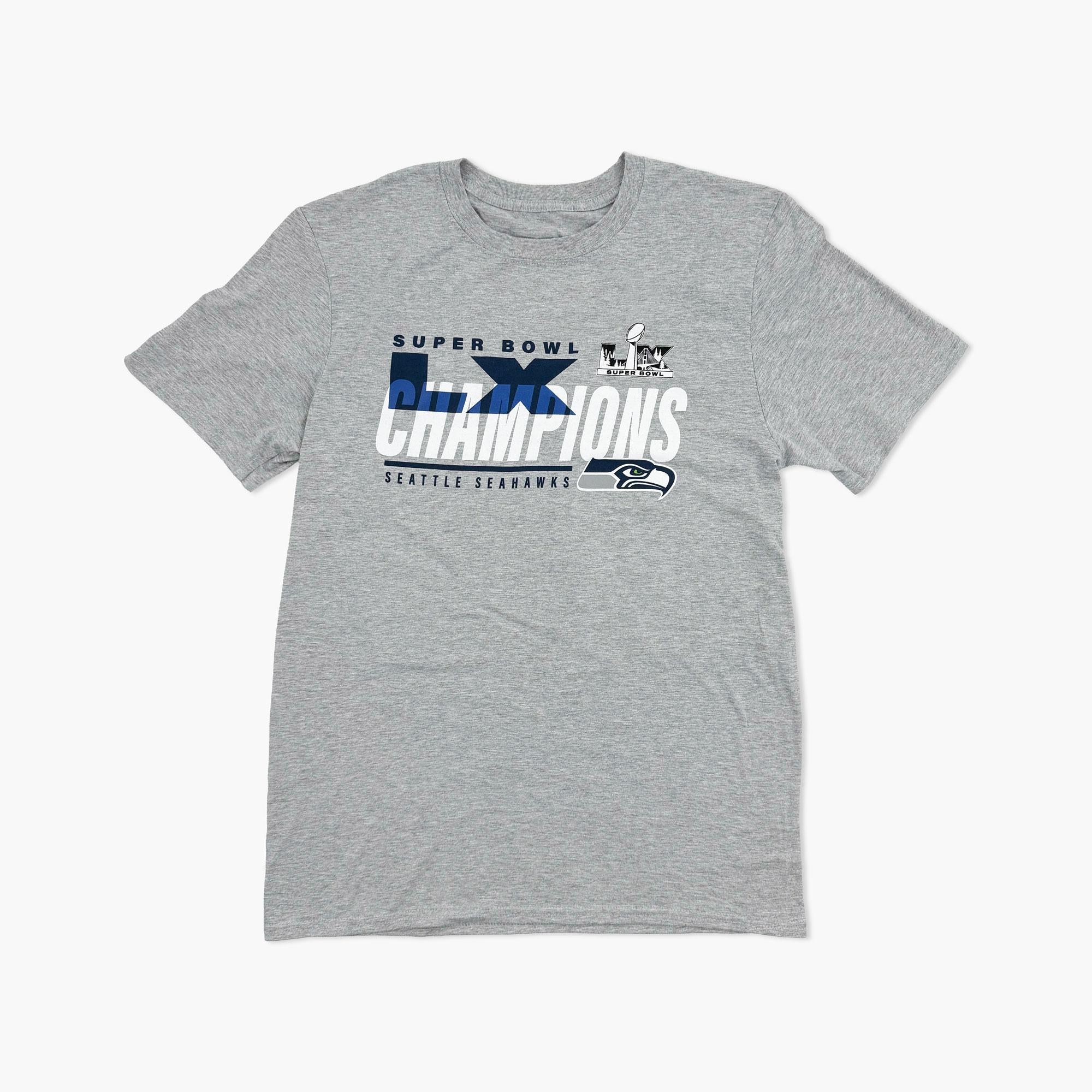 Celebrate every unforgettable Seahawks moment in classic team style with this officially licensed Super Bowl tee. Designed in Heather Gray for the Seattle Seahawks with a striking victory graphic, this shirt captures the pride and energy of Seahawks fandom as you honor the team’s big-stage success. Its soft, comfortable fabric makes it perfect for game days, watch parties, or everyday wear, while the eye-catching design keeps your team loyalty front and center. Show off your passion for Seattle and wear your victory with pride in this standout tee.