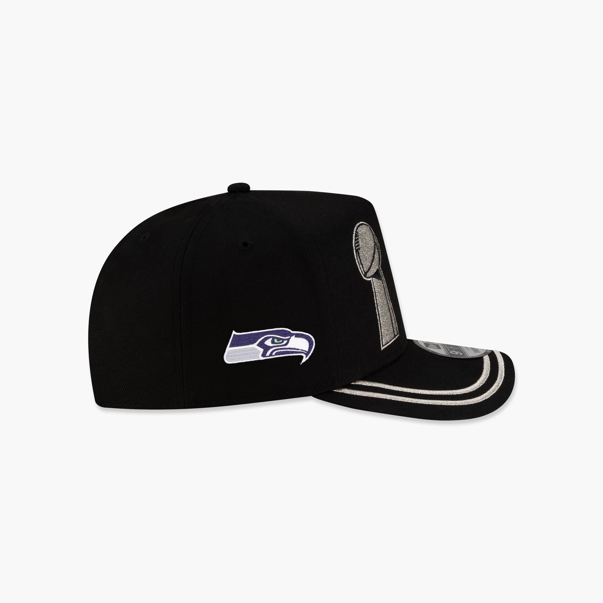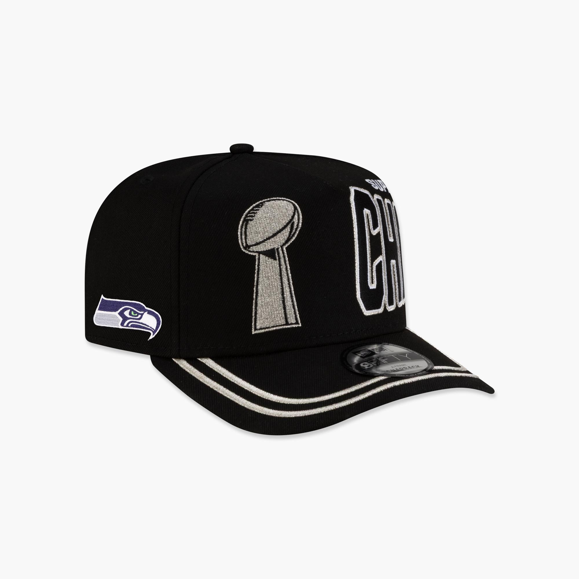 Seattle Seahawks Parade Super Bowl Champions A-Frame Snapback celebrates the Seahawks’ Super Bowl victory! Celebrate in style with the hat style worn by the team for the Championship Parade! This New Era snapback features an exclusive design to celebrate an incredible accomplishment. This hat is a must-have collectible for Seahawks fans commemorating a championship season. Perfect for game days, celebrations, or adding authentic Seattle Seahawks championship gear to your collection.