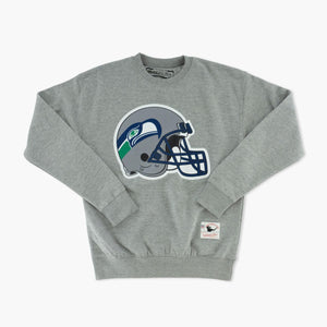 Seattle Seahawks Throwback Helmet Logo Grey Crewneck
