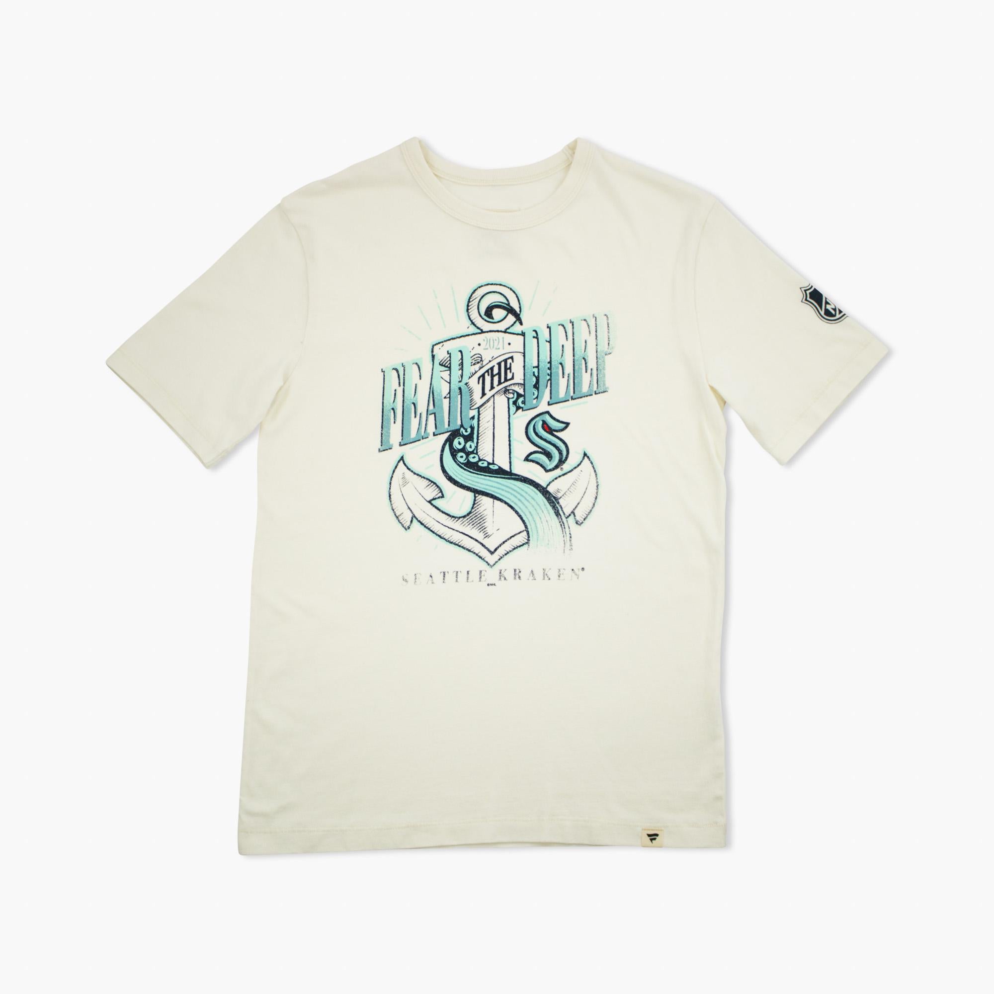The Seattle Kraken Fear The Deep Vintage T-Shirt dives into bold style inspired by the deep sea. Featuring a distressed anchor-and-tentacle design with the Kraken’s signature “S” logo, it captures the spirit of Seattle hockey. Made with soft cream cotton and a retro wash, this tee delivers all-day comfort with vintage Kraken flair.