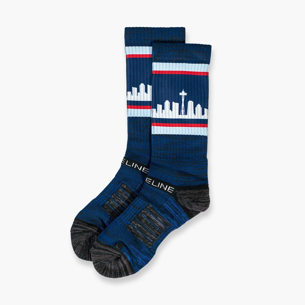 Seattle City Skyline Navy & Ice Blue Strideline Socks