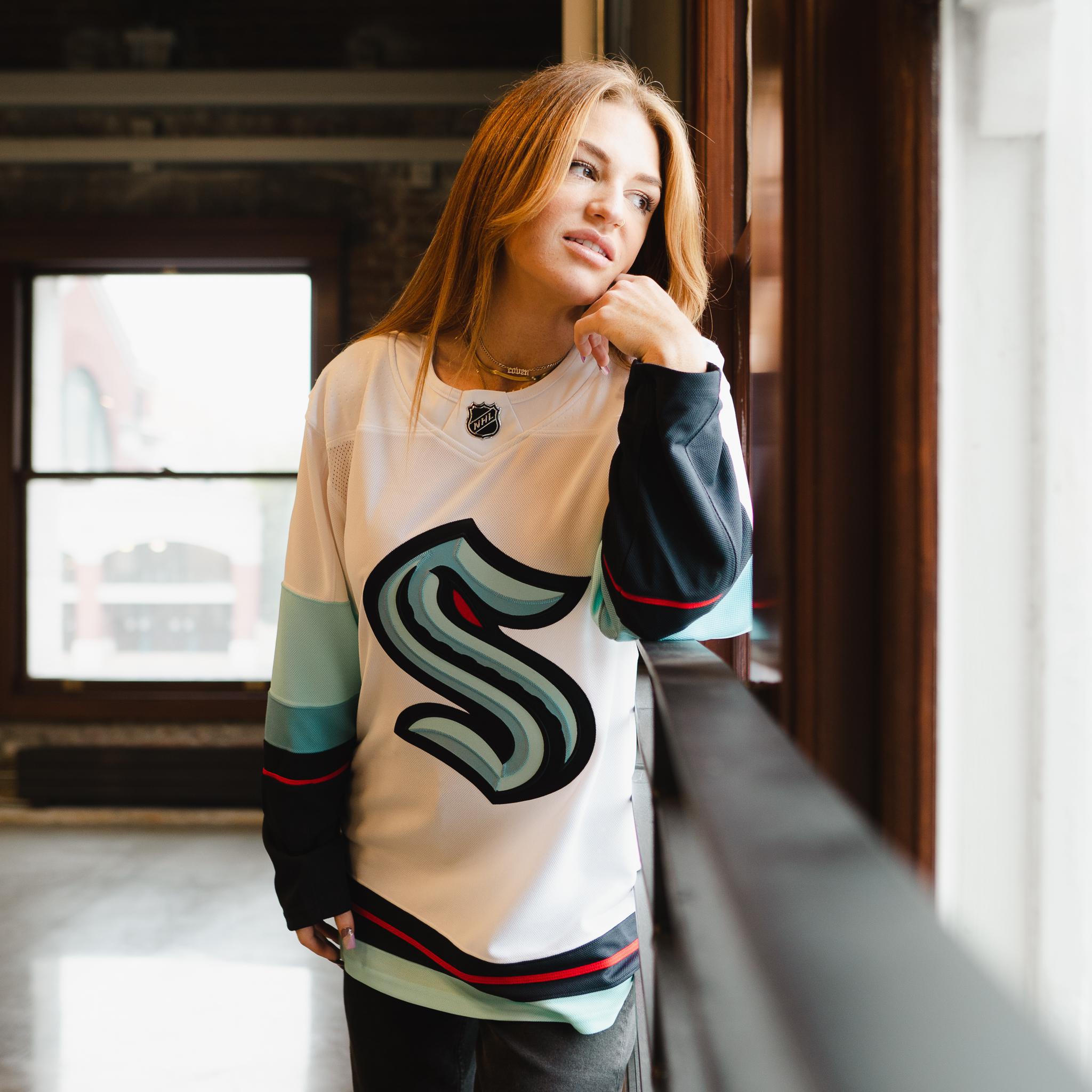 The official Away White colorway of the Kraken Jersey is a clean look for any Kraken fan. Let's deck the whole city out in Kraken colors - thanks for shopping local for Seattle Kraken jerseys!