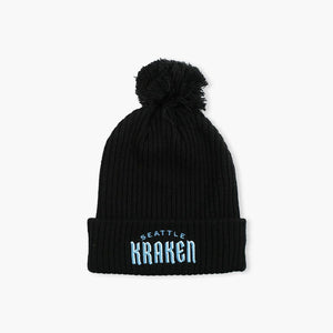 Seattle Kraken Black Wordmark Cuff Pom Beanie