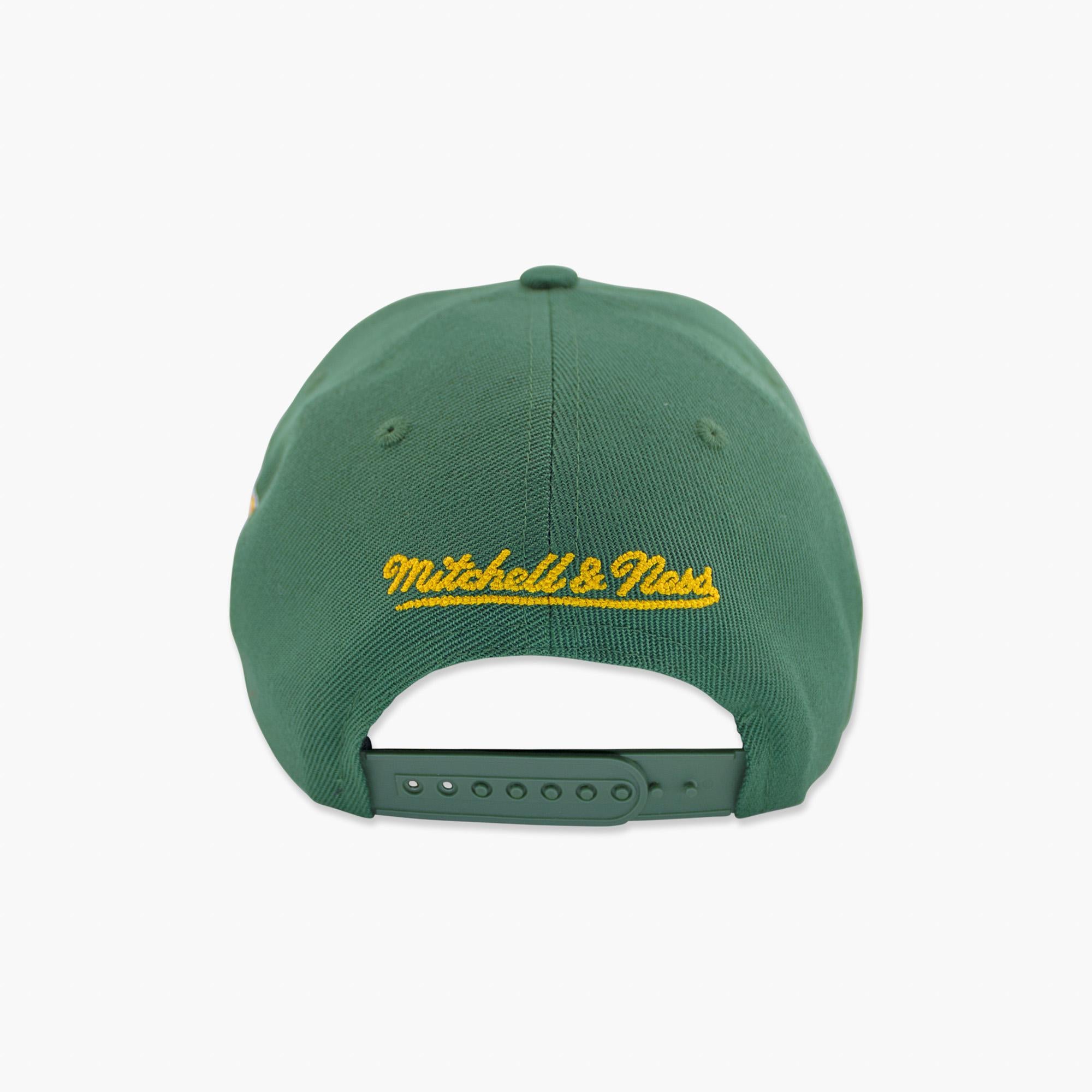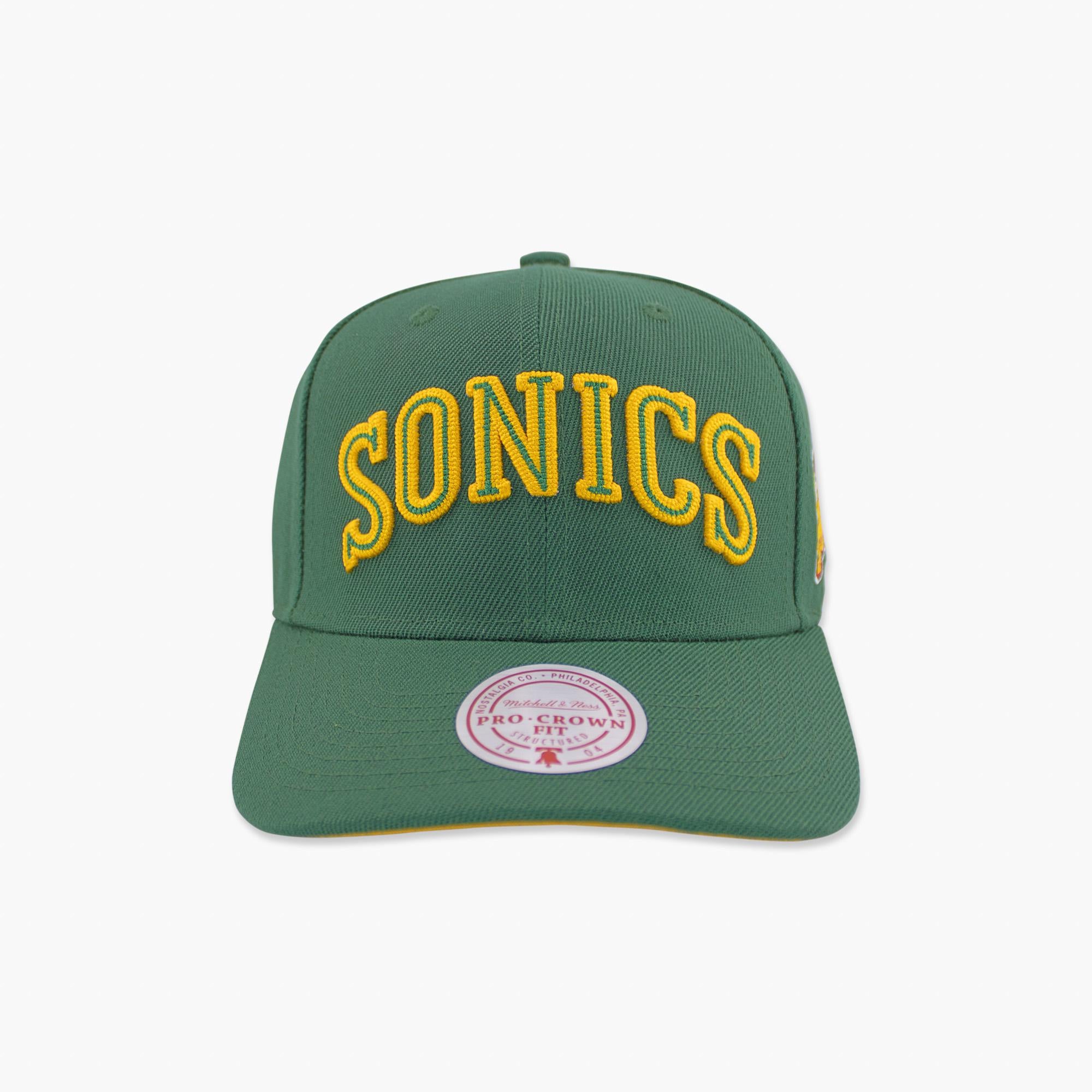 This Seattle SuperSonics Chain Gang Pro Crown Snapback brings bold retro energy with its oversized SONICS lettering and classic green-and-gold colorway. The iconic space-needle logo on the side adds an authentic throwback touch Sonics fans love. Built on Mitchell & Ness’s structured Pro Crown silhouette, it delivers a premium fit and standout shape. A must-have piece for any Seattle basketball fan looking to elevate their Sonics collection.