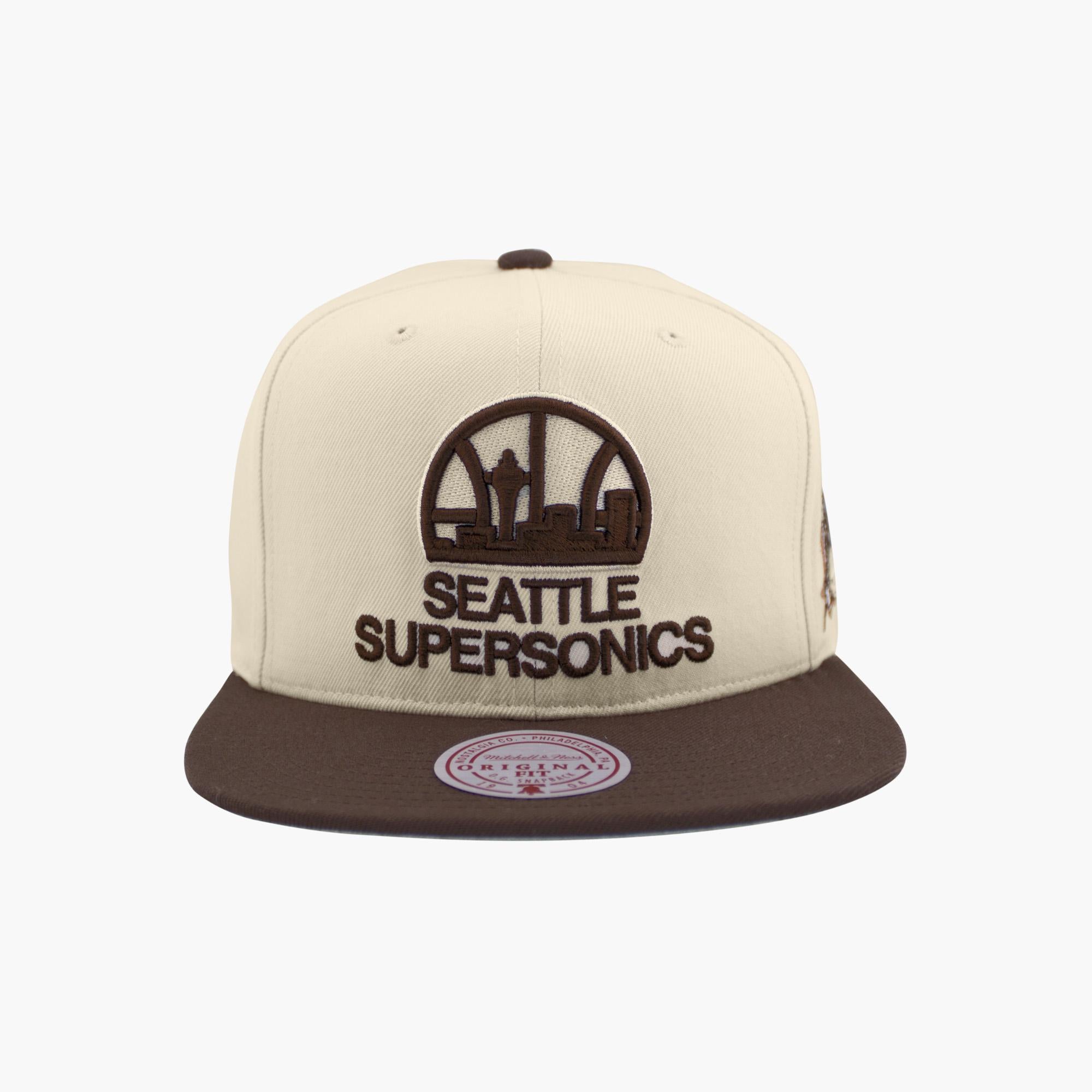 The Seattle SuperSonics Cream/Brown 40th Anniversary Fashion Snapback brings vintage energy to a timeless design. Featuring the iconic Seattle skyline logo with a 40th Anniversary side patch, this two-tone Mitchell & Ness cap celebrates Sonics heritage in style. The structured fit and snapback closure offer classic comfort. A perfect addition for every Seattle basketball fan’s collection.