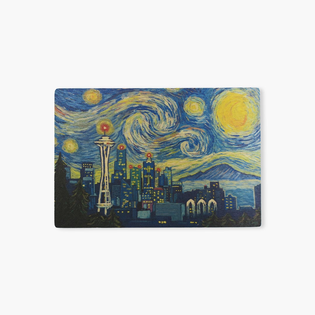 LP Seattle Skyline Van Gogh Starry Night Wooden Postcard