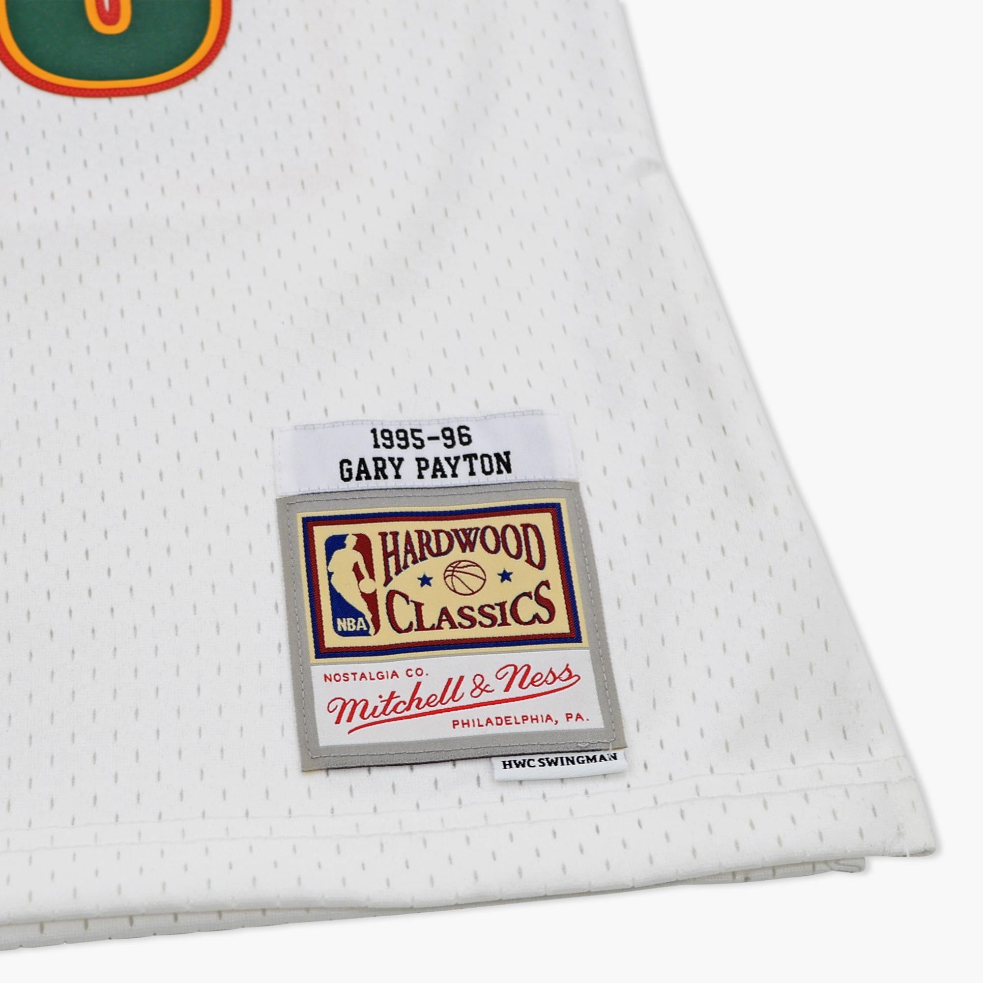 Show your love for "The Glove" with the Seattle SuperSonics Gary Payton 1996 White Swingman Jersey. This iconic jersey features the classic white mesh design with vibrant green, red, and yellow accents, along with Payton's legendary number 20 and authentic Sonics logo. Perfect for paying homage to one of Seattle's greatest players, this Hardwood Classics jersey offers comfort and style for fans. Represent the golden era of Sonics basketball with this must-have piece of NBA history.